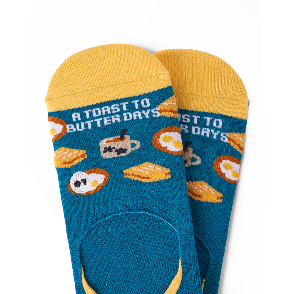 The Local Breakfast No-show Sock features kaya butter toast, soft-boiled eggs, and traditional kopi (coffee), a beloved local breakfast meal that every Singaporean would be familiar with. Let's toast to butter days!