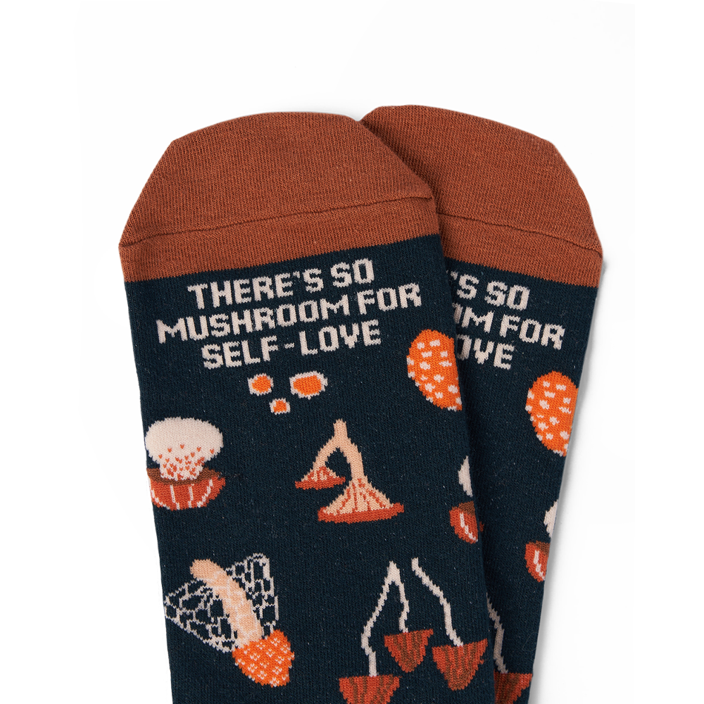 Self-love is an essential component of happiness. But it's often neglected because your brain says 'I haven't got time for that now'. The Mushroom for Love Sock reminds you that no matter how busy and overwhelming life gets, there's always still so much room for self-love.