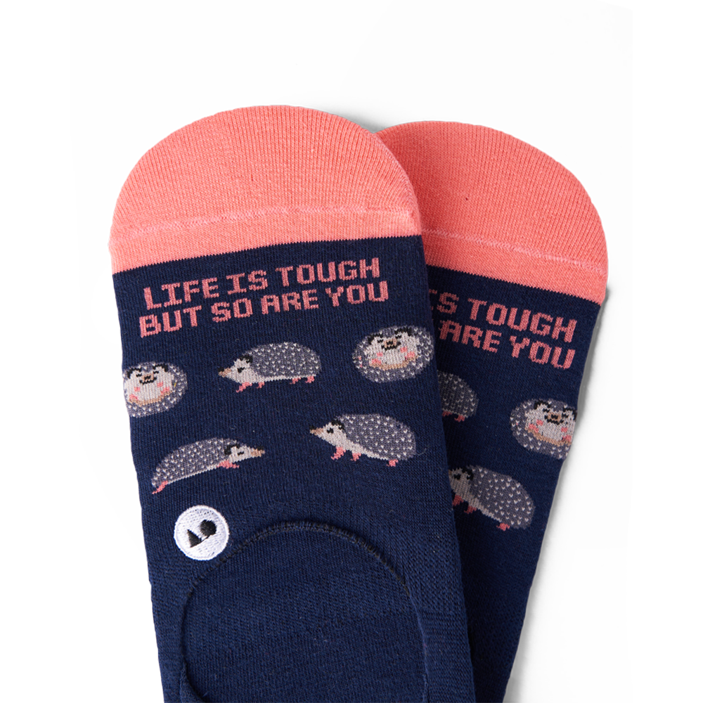 Tough times don't last, people with tough hedgehog socks do! The Tough Hedgehog Sock brushes off life's challenges with a great reminder that life might some times be tough, but you are even tougher.